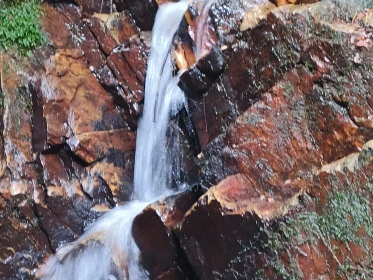 The Dinding Schist, a metavolcanic and metamorphic rock formed through the fusion of various rocks under intense heat and pressure, is prone to weathering by groundwater. Weathering continues as a result of the terracing of rubber trees, exposing the bedrock to environmental conditions. This natural process results in the formation of springs and waterfalls on Bukit Dinding.